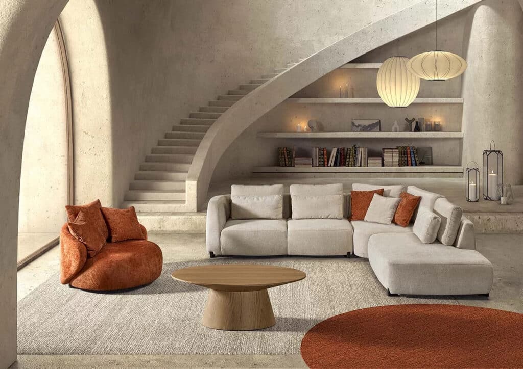 Vous pouvez donc configurer votre salon de différentes manières avec des angles, des chauffeuses ou des chaises longues.
